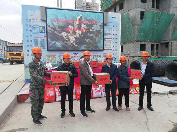 工程公司指導(dǎo)員徐修同對(duì)賈局長一行的到來表示熱烈的歡迎。隨后,賈局長一行參觀了項(xiàng)目施工現(xiàn)場,徐修同就君豪項(xiàng)目做了簡單介紹。賈局長對(duì)施工現(xiàn)場各項(xiàng)工作的有序開展表示充分肯定,同時(shí)叮囑項(xiàng)目管理人員不僅要保證工程質(zhì)量、安全和進(jìn)度,還要切實(shí)保障建筑工人的合法權(quán)益,關(guān)心建筑工人的工作與生活。最后賈局長一行將慰問品發(fā)放到工人的手中。