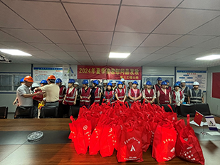 6月29日下午,第三工程公司在江城首邑項(xiàng)目部舉行夏季高溫慰問活動。第三工程公司副經(jīng)理吉祥和工會負(fù)責(zé)人丁連勇親自為全體員工送上了防暑慰問品,表達(dá)了公司對員工的關(guān)心和關(guān)愛。