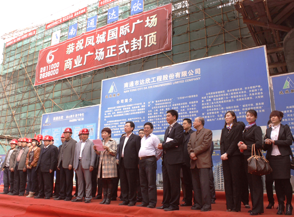 我司承建的唐山鳳城國際廣場工程,經(jīng)過項目部全體員工的艱苦努力,克服樓層高、體量大等種種技術(shù)難題和資金及周轉(zhuǎn)材料投入大、施工人員緊缺的重重困難,抓安全、保質(zhì)量、趕時間、拼速度,商業(yè)裙樓的主體結(jié)構(gòu)如期封頂,這標(biāo)志著鳳城國際廣場工程的施工取得了階段性的勝利。